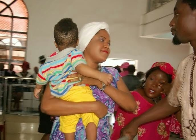 Nollywood actress and movie producer Taiwo Aromokun dedicated her adorable twin boys to the glory of God, this past weekend at R.C.C.G Victory parish, Ijeshatedo, Surulere, Lagos. Her colleague, Toyin Aimaku, some of her close friends and family were there to celebrate with her. See more photos below.